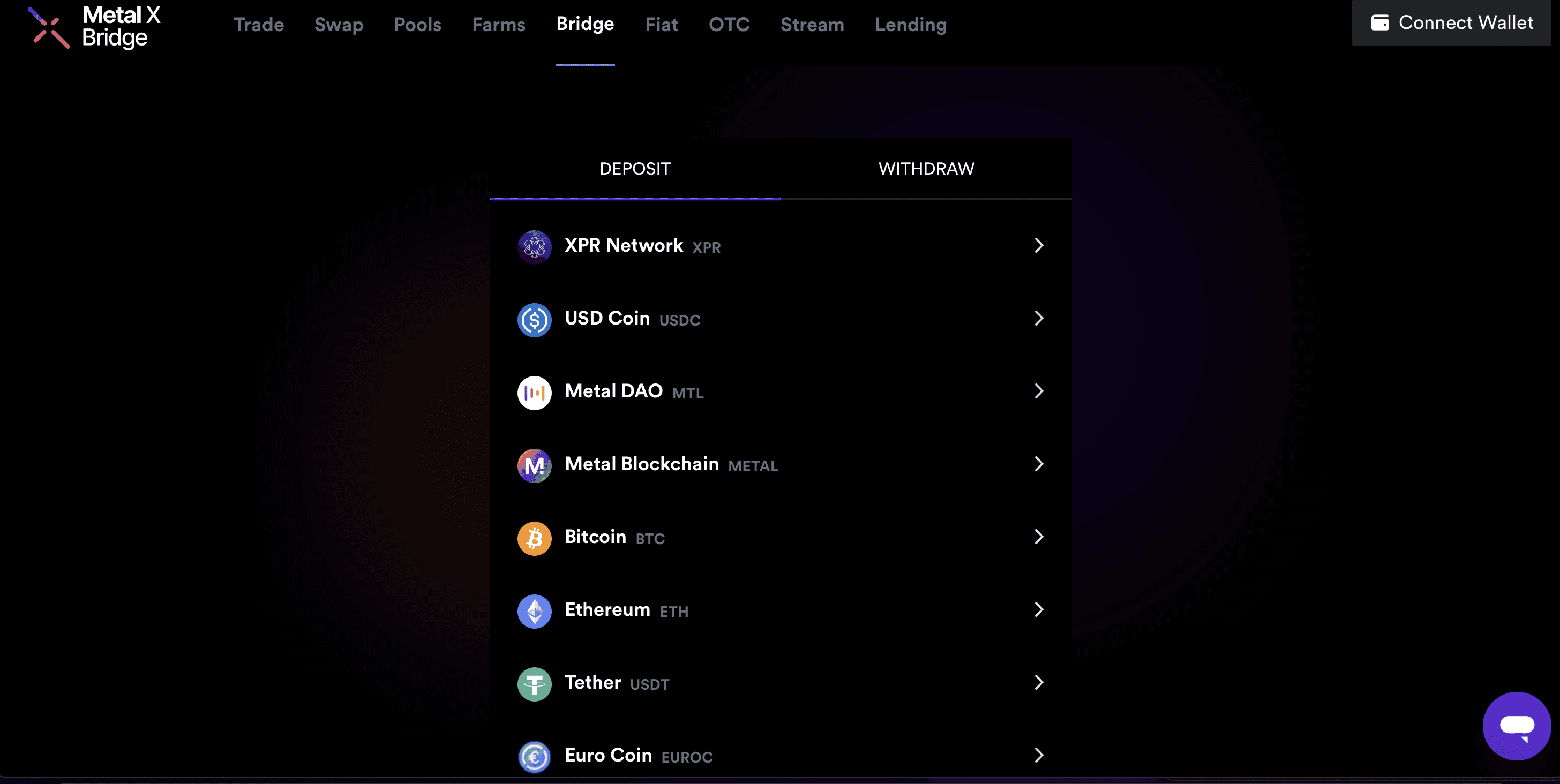 At its core, the Metal X Bridge acts as a connector between the XPR Network and other blockchains like Ethereum, Bitcoin, Litecoin, Doge and more. This connection is made possible through the use of wrapped tokens known as XTokens. These XTokens serve as representations of assets from other blockchains within the XPR Network ecosystem.
