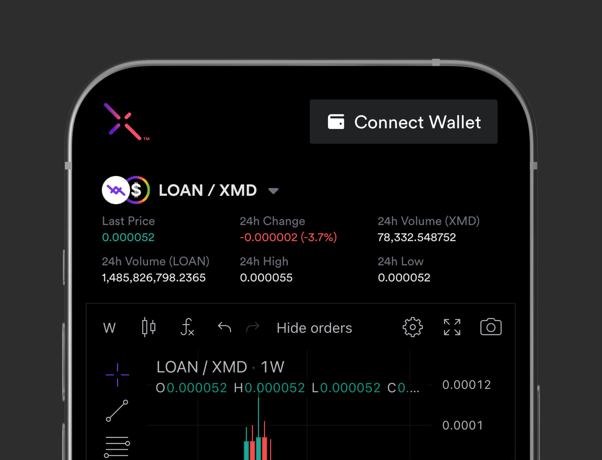 To buy Loan Protocol on the Metal X exchange, connect your WebAuth Wallet and select the LOAN/XMD pair.